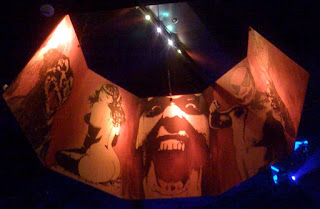 A giant piece over the bar @ WS, a Gazillion scanned & doctored band flyers with the hand stenciled logo, Carey and friend have about 60 hours in this